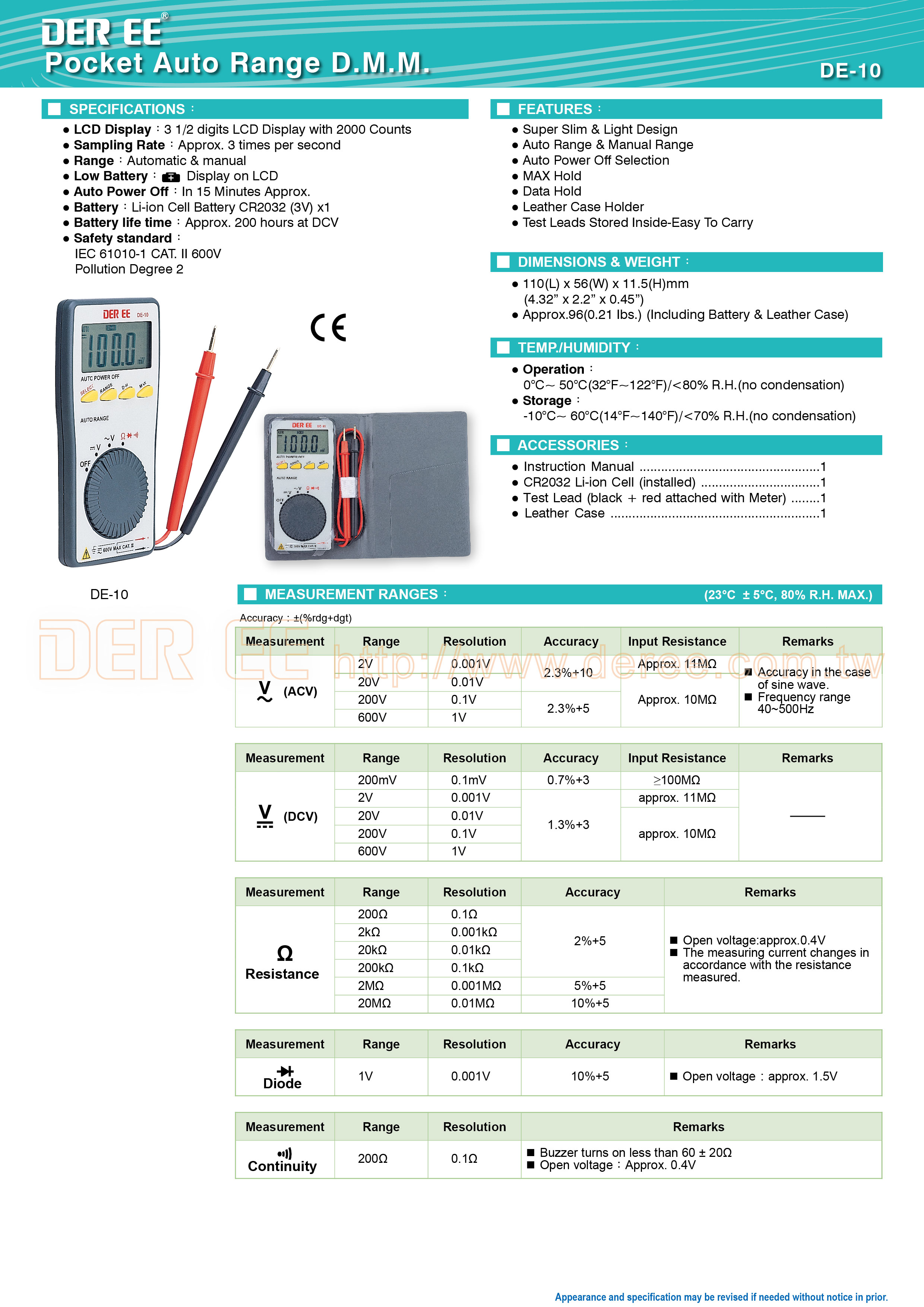 DE-10 口袋型万用电表