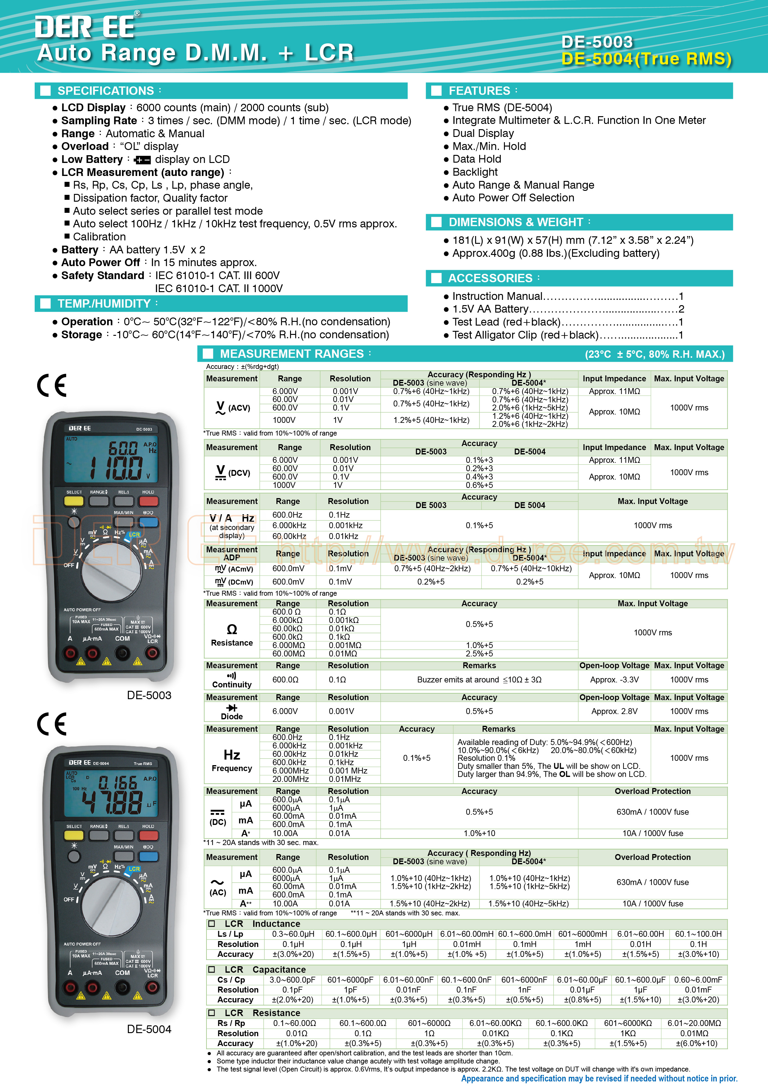 DE-5004 數位型萬用電錶+LCR